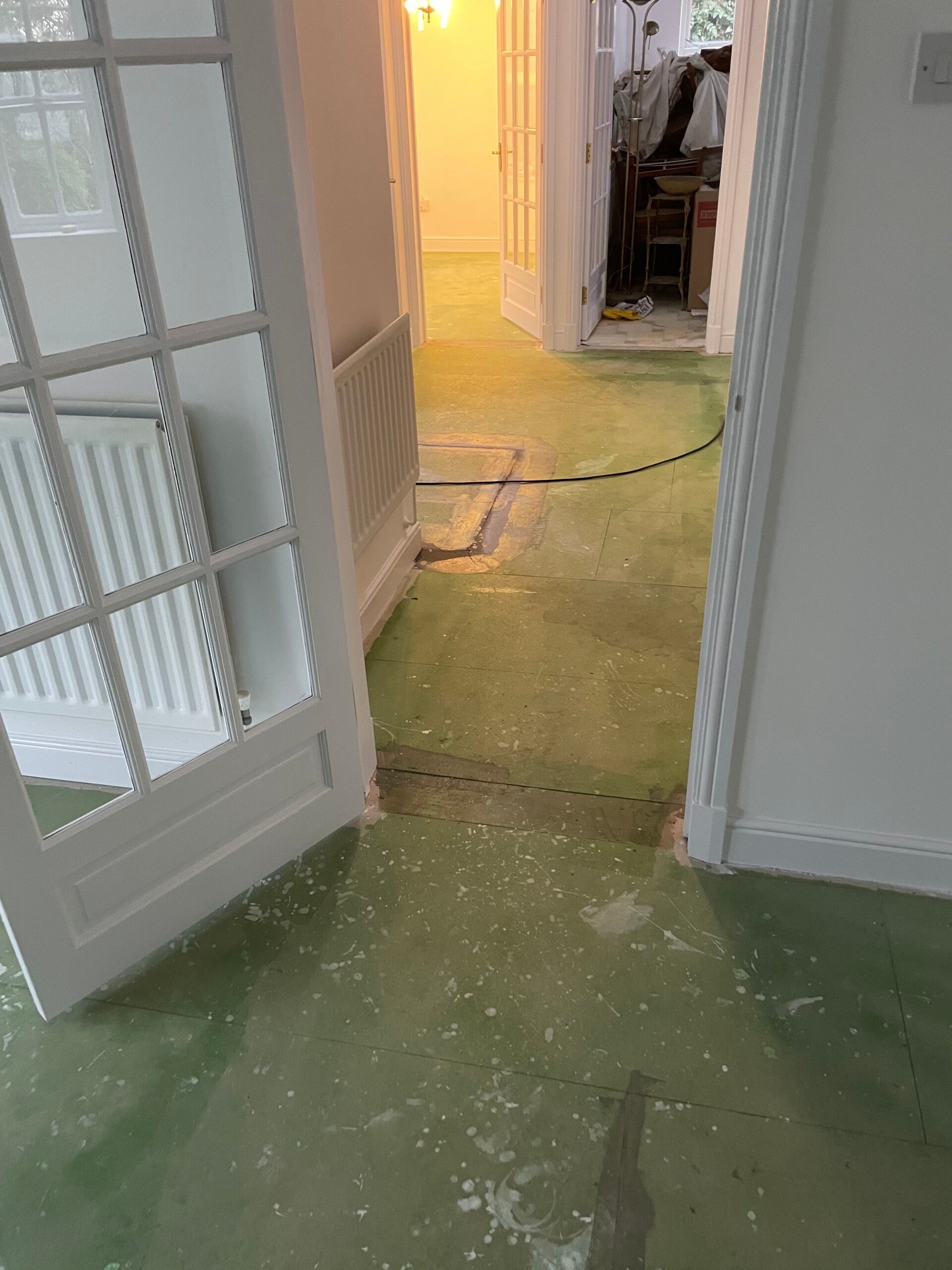 We install self-levelling compound (latex) to create a smooth finish ready for LVT or vinyl. This is one of the most important steps for a perfect finished floor.